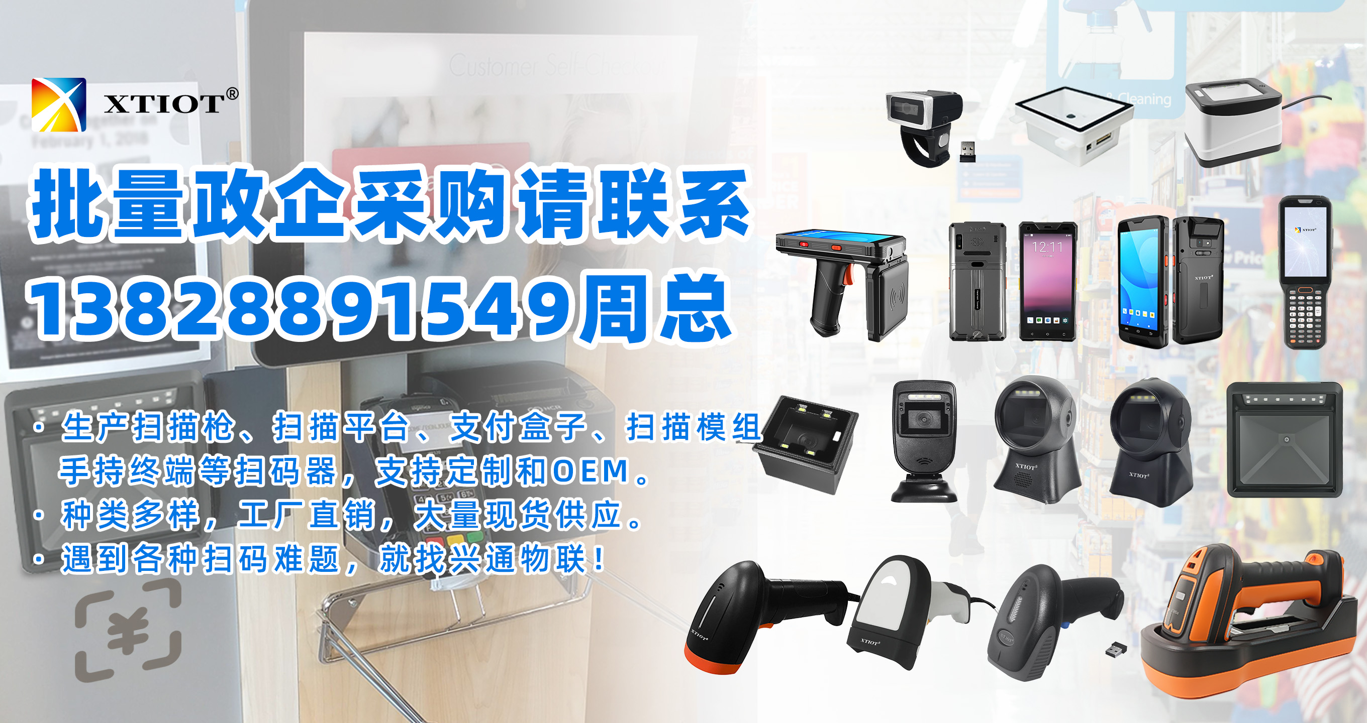 公司专注于有线扫码枪、无线扫码枪、扫码平台、指环式扫码器、扫码模组、扫描引擎、数据采集器、手持数据终端pda、工业读码器、查价机及工控机等条码扫描设备的研发生产与销售,承接OEM、ODM研发外包项目,并为客户提供优质的产品和技术支持。